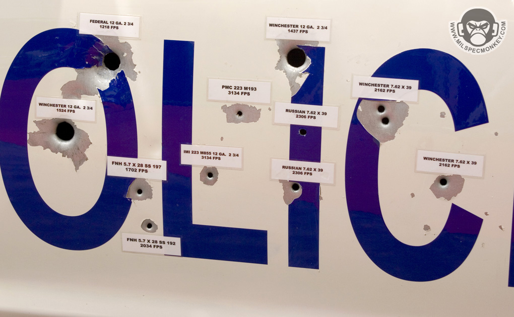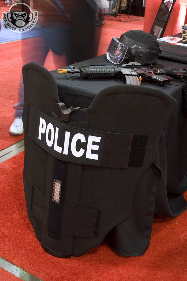 Took some quick shots of these ballistic shin gaurds since you don't see those everyday and thought the bullet hole car panel was interesting for damage reference. Sorry fellas, I didn't get a chance to document their booth babes.
