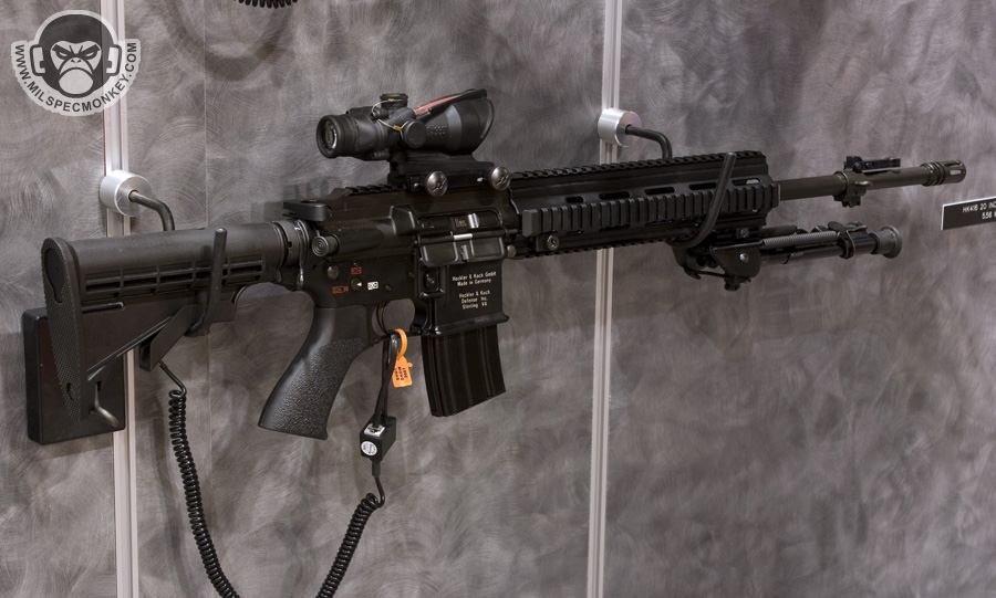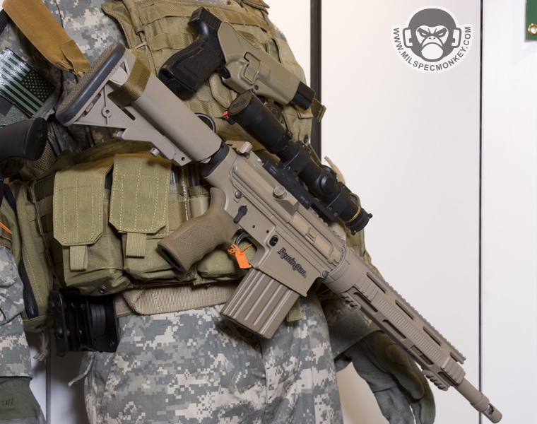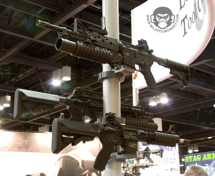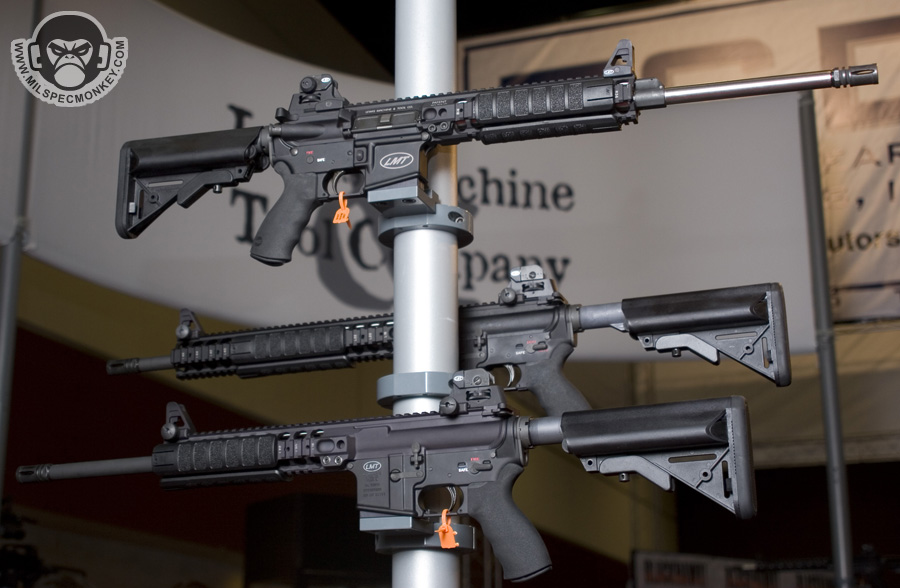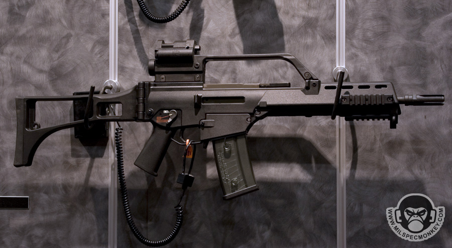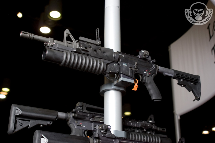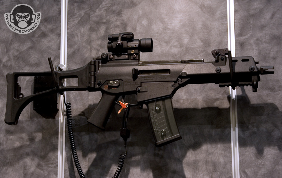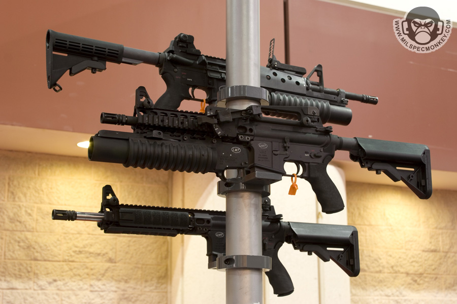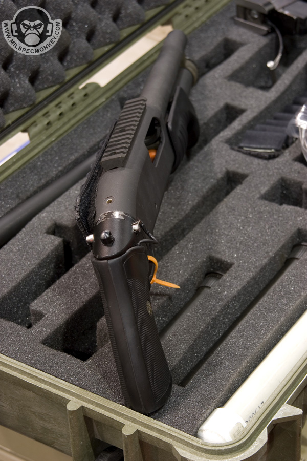 They had a tough looking set of their sniper rifles on display, but my favorite has to be the 870 MCS (Modular Combat Shotgun). The full kit allows one to go from classic stocked shotgun to shorty breaching weapon and then even to a M4 "master key". Stocks and barrels are able to be changed quickly and with no tools.