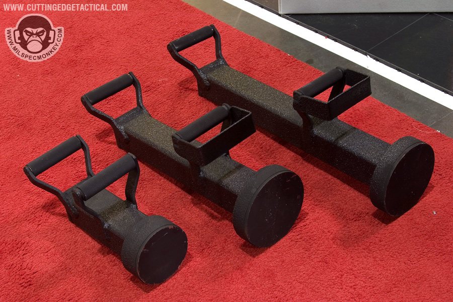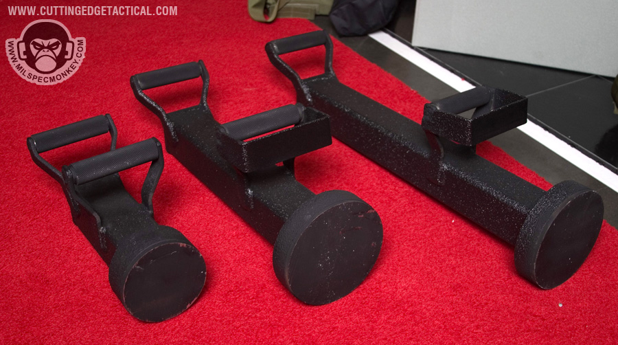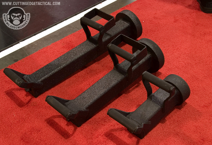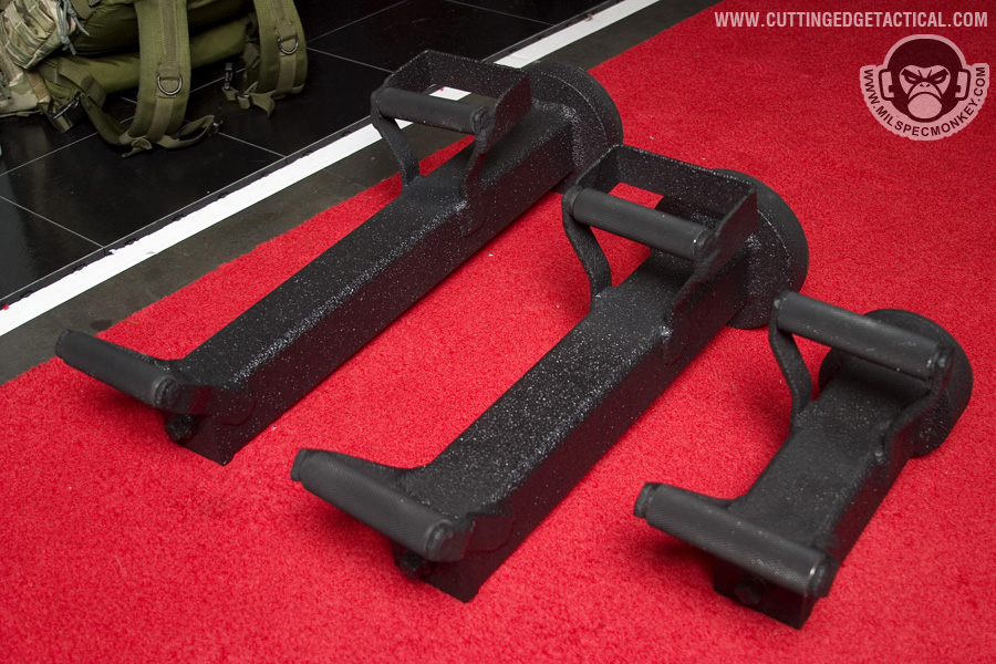 CET specializes in heavy duty gear for the more "rough" tasks of tactical operations. Starting off with the door rams, they look simple offhand, but work great with rollers on the handles. This allows for the classic door busting movements to be performed as easy as possible. 3 sizes are available and it appeared all could have extra weight added through a bolt hole. Most of the ladder systems consist of a simple, but effective joint cover system and range from double pole to single with steps. Not shown was an awesome hook and pole ladder that broke out into a cargo style ladder. I hope to have a video demo later. Also available were almost all the classic manual breaching tools in collapsible form. Using a heavy duty spring lever, the tools can be deployed from compact 17" to 28" extended with gravity. Tolerances are loose to keep smooth operations in harsh environments. I'm keeping things a little vague here since I have 2 great video demos available: