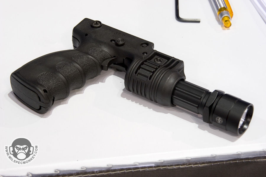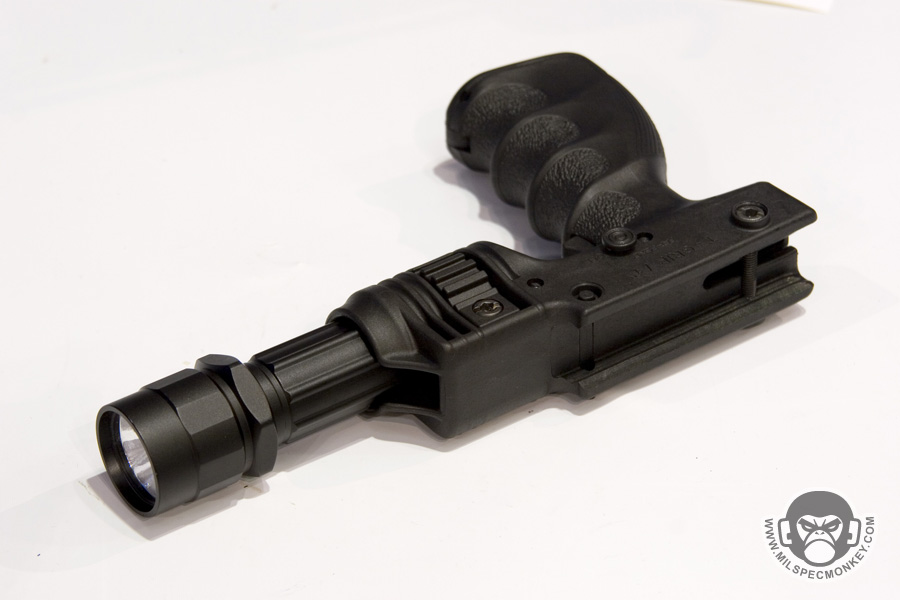Came across these guys while browsing and thought their flashlight grip was pretty cool. For those more on a budget, you can get a G2 or similar flashlight and their flashlight grip for around $100. Surefire's package light grip is way up there around $400. The Mako grip has simple and dependable functionality for a trigger to depress the light tail cap and a safety switch.