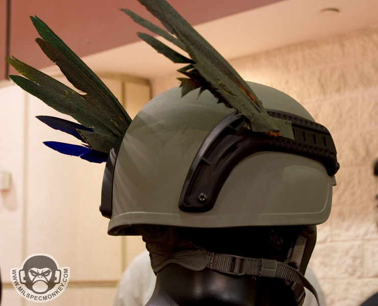 Remembering how crappy the PASGT strap was, I was happy to upgrade to the MICH setup. Ops-Core showed us not to settle and went even further to improve upon the MICH strap. Using custom hardware and sound tension concepts, their strap greatly improves the ease of adjustment and snug fit of the helmet which is crucial for airborne operations or when donning NVG. They have also developed a rail system to attach various equipment or even picatinny rail. Don't let the wings distract you too much, the booth girls were just having fun. I took home one of the MICH straps so I will be sure and have a review coming. Be sure and check out the demo for more intel: