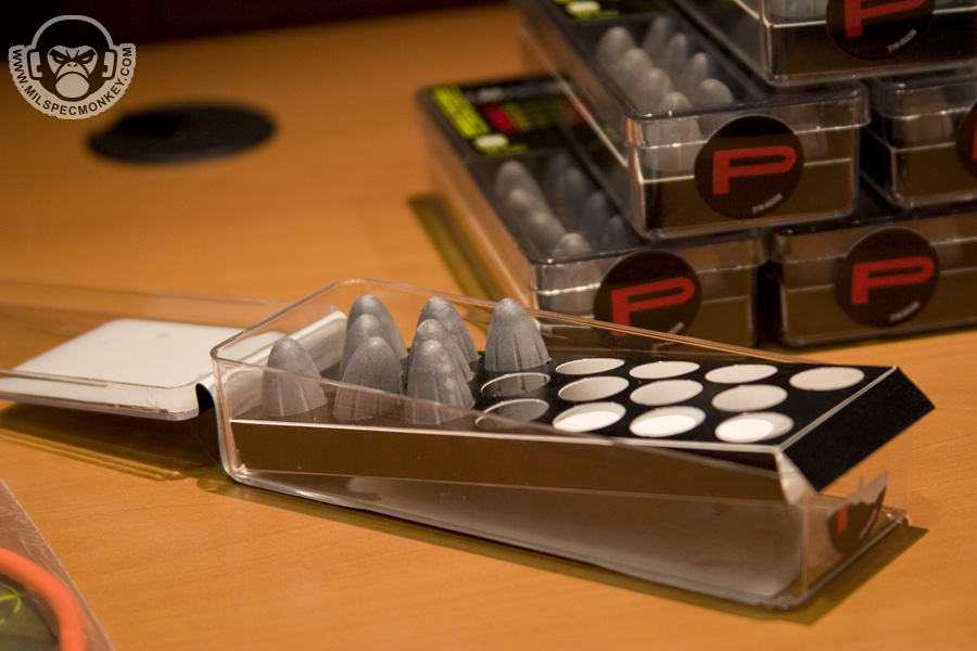 Gave these guys a media bugging right at the end of shotshow while they were packing up. I was foolish not to take pics of their 40mm launchers. As you can see they carry a vast range of less lethal products and their training counterparts. One thing I had not seen before was the mini-bang. They have the same qualities as a full flashbang, however smaller and 30% lighter. Fits in 40mm shell loops and some double mag pouches.