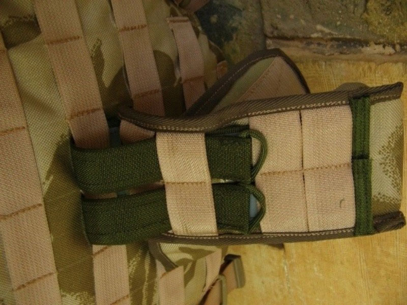 An Israeli company design with the main intent being to attach US MOLLE and British Osprey pouches onto PALS. I don't have any myself, but word is they are made from 25 mm mil-spec nylon webbing with a Nexus 25 mm Delrin Looploc attached on one end. The main securing method is a snag-tab grabbing onto the Looploc.