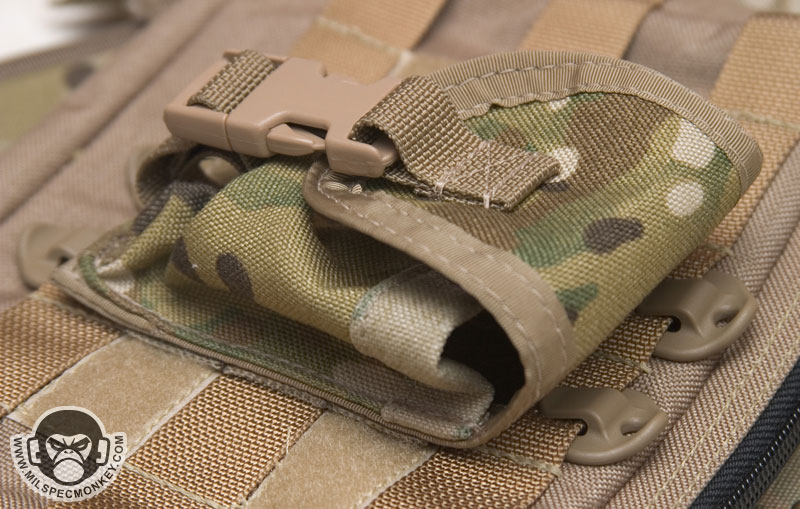 Tactical Assault Gear uses a similar soft snap as Paraclete (licensed), however adds an extra webbing fold to increase security. This way if enough force is ever delivered to rip the webbing out of its pocket, the extra webbing fold will snag on the PALS webbing.