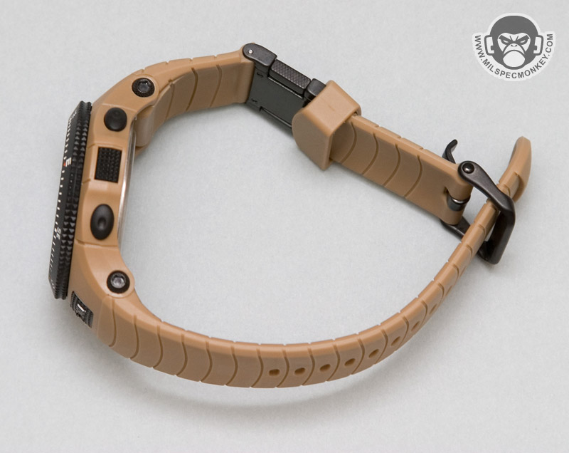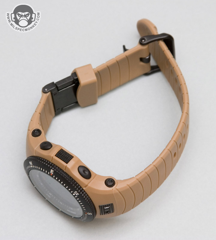 The ballistic calculator is extensive allowing input of: • Temperature °F/°C • Altitude (Metric & US) • Height Above Bore • C1 Ballistic Coefficient • muzzle Velocity • Zeroed Range • Wind Speed • Wind Direction • Target Range • Inclination Angle • The firing solution may be displayed in MILS, TMOA, SMOA, or in number of CLICKS. Core features are: Chrono includes three time zones, alarm, stopwatch, countdown timer and day/date displays. To use with the compass, a turnable bezel with directional markings is standard. Although the watch is already big enough to accomodate most people with or without gloves, a quick release band extension is included. I only see the band extension being used on large people with cold weather gear on, but it is a nice accessory to have standard. The strap has a nice metal quick-side-release system and the pieces can be attached correctly or reversed. The core strap to watch connection is heavy duty with hex screws. Even the case it comes in is pretty swank and the instructions are well done. I have handed this one off to one of my SF buddies for a propper beating. I hope to keep you updated soon on ease of use and general handling.