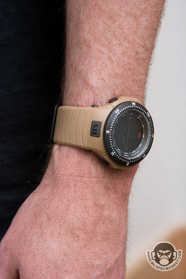 I don't have a lot of experience with watches so I was pretty easy to impress with the Field Ops watch. All the materials feel nice and rugged with a high-density polycarbonate frame. Even though it is a big-honkn' watch, I was able to put it on without issue or any offhand worry of banging it on my environment. The main thing that sets this apart from most watches would be the SureShot™ ballistic calculator and digital compass.