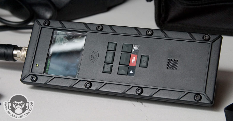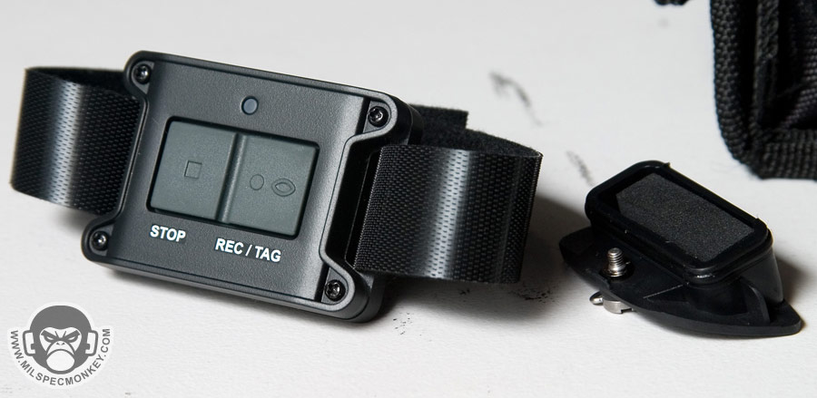 The wireless remote is another huge feature that comes with the POV standard. As I was saying earlier, most of the other helmet camera systems now rely on separate digital recorders and very few of them have wireless controls. If they do, they are infrared remotes which require line of sight and won't work for most tactical needs. Even on the older rigs using LANC ports to plug a controller to small camcorders, this requires another friggin' wire to deal with. The POV.1 controller allows recording, stopping, and tagging. The tag feature allows you to mark movies, but when in loop the recorder constantly keeps a set time amount of video and only saves the timeframe when the tagged button is pressed. So say you are recording in loop mode with loop time set to 5 minutes; You go around for 20 minutes of boredom, but then suddenly commence to some high adventure action. Once the Tag button is pressed, 5 minutes of footage before you pressed that button is saved and you don't have to worry about the would-be crap footage before it. Sadly the remote is not able to control if the unit is totally on or off, hopefully this will be fixed in the future. It would also be nice if the recorder could communicate with the remote. One feature on the LANC switches that I wish the POV remotes have was they would glow or flash lights to tell the status of the recorder. The POV wireless controller does not have this feature, so the red light on it is only for confirming you are pressing a button on it. For reliable use the buttons should be held down briefly. If quickly tapped, this may not be long enough for the recorder to "hear" the command. Be sure and be in record mode when using the remote. If you are in play mode or on the settings screen, the remote will have no function. I think this sucks, and that it should record when I press the damn button, hopefully this should be an easy firmware fix. Another small oddity is the LCD screen will display if a record command comes from the remote. The LCD will go to sleep on its own again, but this is a waste of power since most of the time users will not be able to see recorders when they use remotes. The remote has a range of about 6 feet depending on what is in the way and can be set to 10 different channels to allow a squad sized unit to all use wireless controllers without inner conflict.