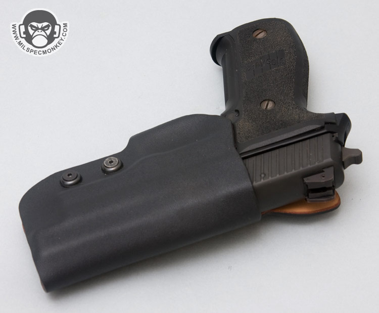 This isn't the most intuitive section placement, however I thought it was the best place until I make a holster section. While getting the GI SLMC I also picked up one of these Silent Thunder holsters. The main concept was to use the great qualities of a kydex holster and to add leather on the inside so give smooth and quiet functionality. The final product is very professionally done and succeeds in its design goals. Each one is made weapon specific with hand dominance and a choice of mounting option.