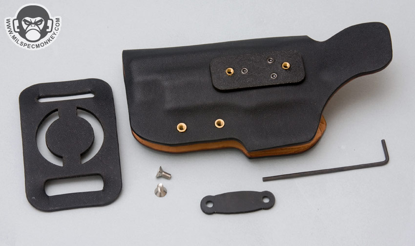Since there aren't any snaps or hoods the overall security level is low, however extracting the weapon is about as easy as possible. To further adjust the grip of the holster, there are 2 screw tension points to let the user balance security versus an easy release. I was able to find a nice point where I could still do rolls and cartwheels and such without losing my gun, yet still able to draw my gun without hassle. Mounting options are vast ranging from belt loops, dropped offset, OWB, IWB, and more. Most use the circular screw mount to attach that allows for some serious rotational possibilities. Common weapon cants are easiliy achievable and this can be pushed much further into 150 degree territory. To adjust the Silent Thunder only one hex tool is needed which is generously included.