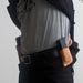 As far as I can tell all of these keypoints are true. All the stitching looks solid, very smooth finish on the inside and nice protective coat on the exterior. Although I was a bit quick to beat up on it, everything looked quite pristine and perfect out of the box. For my first leather lesson I learned that some break in time is definitely required. While moving around you get some pretty serious leather on leather creaking noises. Goods tend to come stiff and tight as it a lot easier to loosen up a holster or pouch rather than being screwed if they come too loose. My initial impressions were that the holster was pretty darn close, I was able to extract and insert my Glock 19 smoothly while still having reasonable retention where I was not concerned for it to fly out during active movement. The layout works well covering the gun in the right places such as the trigger guard, yet offers enough open space and distance from the belt to easily grab the pistol grip. Bonus points as my XS big dots sights were no issue at all for the holster. The mag pouch on the other hand, I was unimpressed as it was a grippy suma-beyatch and I was totally unable to extract quickly. On top of that, due to the Glock magazine design, the notch for the mag release catch can create a snag point on the pouch while extracting a mag in a hurry. To be fair this isn't necessarily a pouch design flaw, but I did have to put more consideration into the angle of extraction to avoid. I first tried putting magazines in and out A LOT, and left one rammed in there over night, but it was still pretty grippy. After consulting the Rafter-L maintenance page I tried the trick of putting the included plastic bag over the magazine, inserting this combo into the pouch, and leaving it that way over night. That seemed to do the trick and tamed down the mag release notch snag issue considerably at the same time. The cut height of the magazine pouch is nice delivering enough coverage on the mag to hold it in place while also being open enough to allow a good grip on the magazine. One problem that I still have however, is that the belt loop on the magazine pouch is pretty loose. It will slide all over the place and the only thing to keep it in place are the belt loops on my pants. Not a deal breaker, but wish it was a snug fit like on the holster. Not only is the belt fit good on the holster, but the two loop design allows the belt to be woven on a pant belt loop to keep the holster consistently in place.