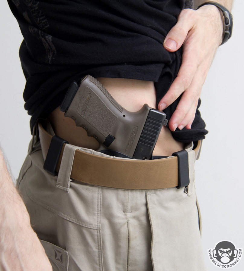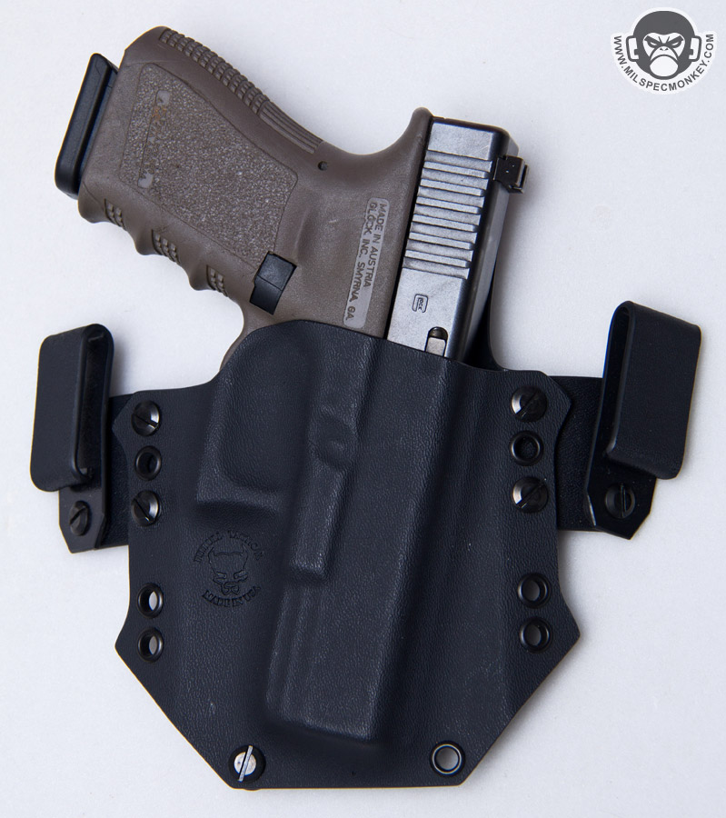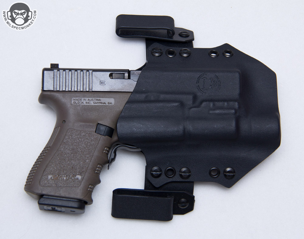 There is a lot of decent kydex out there so always nice to see a company keeping things fresh with new ideas like Pitbull Tactical. Their main product has been the Bloodline holster line in which the latest generation has some pretty sweet features. The general size and shape of the Bloodline is about what most would expect a modern kydex holster to be, however the hole placement and clips hardware offerings allow for not only height adjustment, but cant (angle) adjustment, and the ability to convert back and forth from OWB and IWB setups. (OWB = Outside the Waist Band and IWB = Inside the Waist Band)