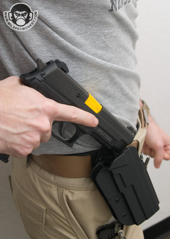 This isn't the most intuitive section placement, however I thought it was the best place until I make a holster section. While getting the GI SLMC I also picked up one of these Silent Thunder holsters. The main concept was to use the great qualities of a kydex holster and to add leather on the inside so give smooth and quiet functionality. The final product is very professionally done and succeeds in its design goals. Each one is made weapon specific with hand dominance and a choice of mounting option.