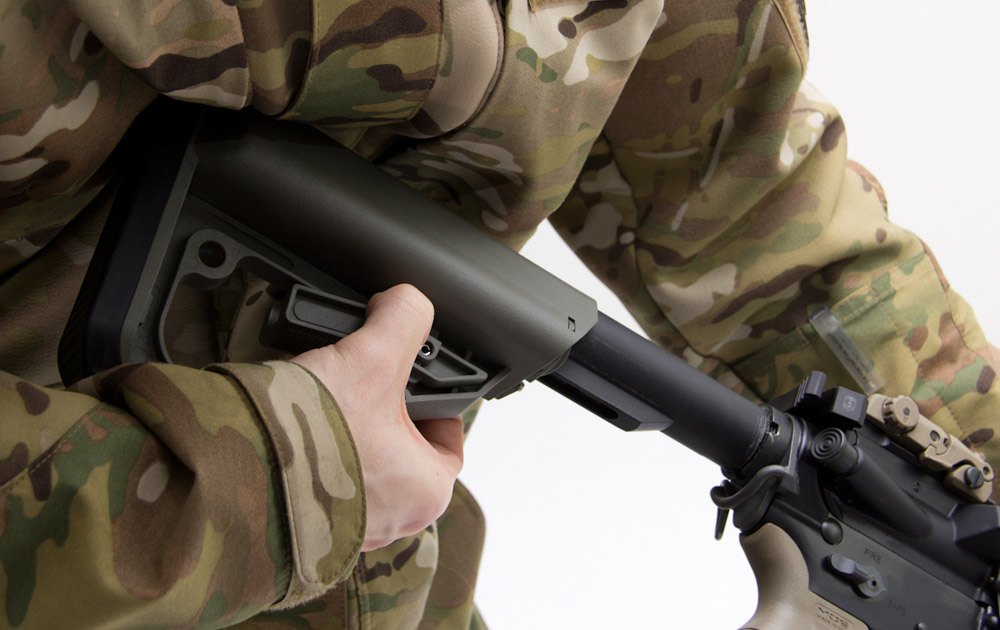 The overall TI-7 feel is solid as it uses MIL-SPEC materials with metal components being stainless steel. Currently the main colors offered are Black, Flat Dark Earth, Olive Drab, Foliage Green, however upon request appears you can get cool guy ones with US flag treatments and even other training colors such as blue. Available in both MIL-SPEC Size and Commercial Size Extension Tubes, at a great price point for a stock of this class. Seemingly just another stock at first, the balance of a simple / clean shape with clever design enhancements makes the TI-7 worth checking out.