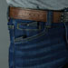 The 13oz stretch denim (98% Cotton, 2% Spandex) is definitely one of the main aspects that give the pants reasonable mobility. That 2% doesn't sound like much, but it is night and day compared to traditional fabric fitted jeans and being able to just move around. I went with the medium wash version where I like the gradient effects give a worn in look without having super rough spots or holes. For those who want a more clean solid color look the dark wash color is also offered. The contrasting tan stitching is a pretty classic look with bar-tacks in appropriate places and even some rivets. If being nit-picky the leather patch on the back waist is a bit big and contrasty for my tastes. The logo variant seems like an odd remix as well for the look, but worst case if anyone hates it, it can be removed with some de-stitching.