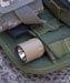 The back area is for the most part totally new. For cooling standoff, foam with rubberized nylon grid is used which looks like it will be much more durable than the air-mesh on the Jumbo. A good dose of this is on the back and the shoulder strap connection areas. Up on the strap areas are sleeves which work well for holding folding knives. I show these sleeves can fit multitools in my pictures, but they are not the most comfortable things to carry there. In the middle is another CCW pocket which is closed with a hypalon flap. The closure is velcro with a metal snap in the middle and a D-ring is up top for an easy grab to get to the pocket. The velcro belt loop connection is also on the hypalon area which can fit up to 2.5" belts. For those who don't know what hypalon is yet; it is really heavy duty rubber-ish material with little give and non-slip qualities. Inside this back area is another 7" x 8" loop field for another place to put modular velcro attachments. Although I do not have one to try, this pocket is also made to fit a 50oz. or smaller hydration reservoir and has a webbing loop for a hanging point. Despite being easier to open up, I don't like this area as much for CCW. The pistol handle can be fairly visible when viewing the side of the pouch and you can't use the belt strap since it interferes with pulling the pocket open. A pistol is easier to get a hold of without the modular holster, but then it is less secure and could flop out while running. Even though I don't sound so jazzed about this back pocket, it is nice to have it there rather than nothing and likely others will find great uses for it.