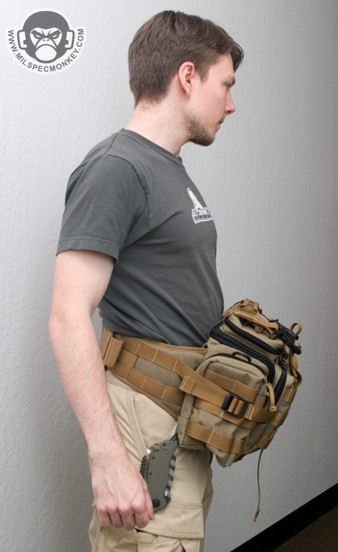 As for core usability the Sabercat suffers the same problem the Proteus does in which you have to disconnect 2 SRBs to get to any of the main compartments. One can't just keep the SRBs unconnected since then the handle they are attached to will flop around everywhere. In my mind, this SUCKS pretty hard. Luckily this is an option so those who totally dig compression straps, they will be there for you. For those who share my opinion, get out your scissors and cut off the top "handle" and the side compression straps. The bottom straps you might be able to make some mods to keep them useful, but if you don't plan on any sewing, you might as well cut those off as well. I just don't see the pack being big enough to require compression, especially if you have anything already inside it. Compression rant aside, once you get the Sabercat how you want it, it is a pretty nice ride. Overall comfy since it forms a thick padded belt and can be quickly used while worn or can be detached and ripped on open for full access. With the size of the Sabercat it can perform many functions, but a few that come to mind would be a good sized medic pack or survival / E&E pack. There isn't much like the Sabercat out there, so check it out if you are in the market for a versatile butt-pack.