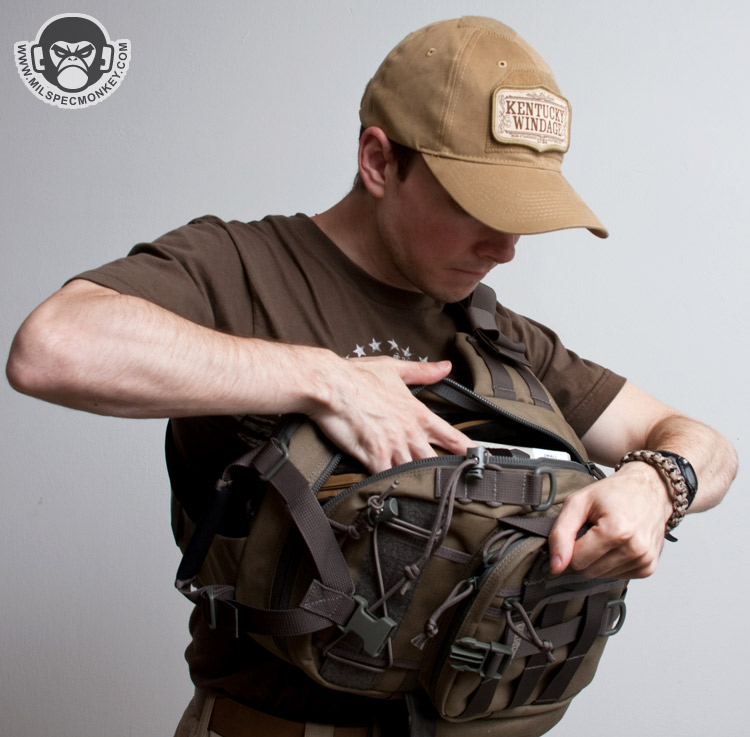 So that covers most of the Noatak layout benefits. If comparing to the Lunada or Malaga I'd say main features in their favor include having an ambidextrous shoulder strap, able to stuff shoulder strap in back CCW pocket to turn pack into handbag, and having PALS webbing on the sides for better modularity. For being a semi small pack the Noatak shoulder strap is a little long. When fully tightened, I wish I could get it a little tighter to secure while running. To compensate I have to crank down on the cross strap which causes more of a shoulder slip-off threat. I know, I'm a small dude, but it brings up the point that I think girls will be into the Noatak's size and they will be even more petite than I. Men certainly need not worry as otherwise nothing about this pack screams girly. Back to the "what is the point?" question, the Noatak lends itself to a EDC sized pack with enhanced backpack functionality. Even though it is a single shoulder strap design, you generally won't have to worry about over-packing weight as long you don't get silly and put a mound of loose ammo inside. The reduced size also makes the body position transitions even easier.