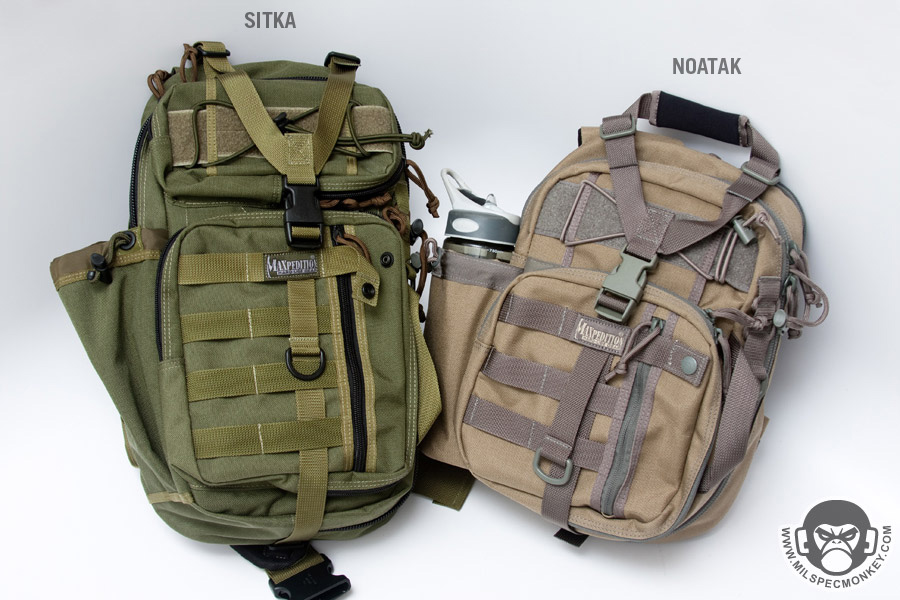 Based on the Sitka, Maxpedition came out with this lil' guy to compliment the latest Gearslinger design format. The Noatak is the smallest so far and had me curious at first since the Sitka wasn't exactly huge. Don't worry I'll still go over the details, but the summary is the Noatak is pretty much a smaller Sitka without the upper front pocket. So you might be like me thinking, well what is the point?...Who needs a smaller Sitka? I can always find crap to fit in about any bag, but I found my answers in older Maxpedition designs.