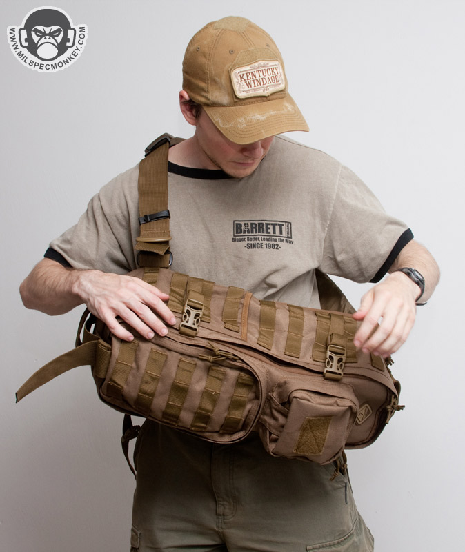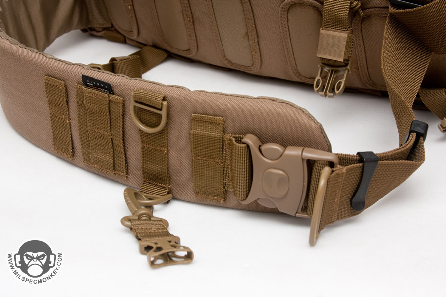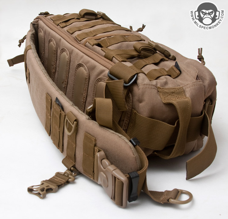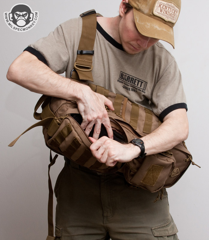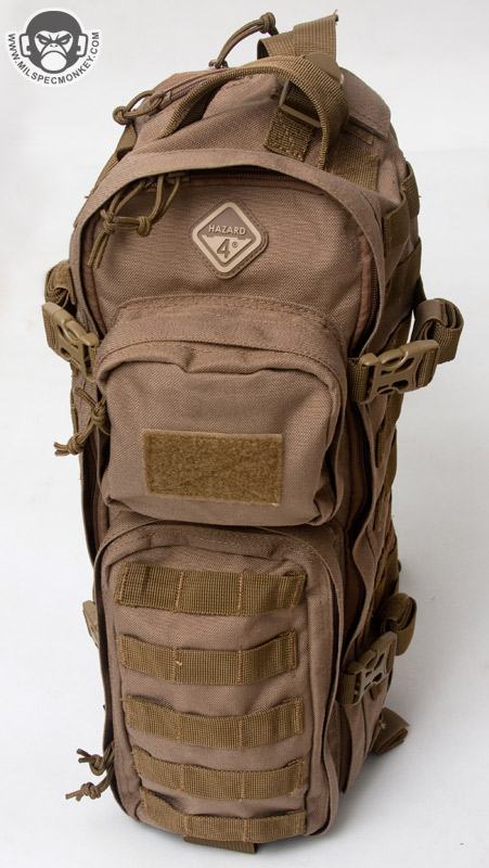 A cross strap comes standard that connects to the other lower side of the pack. These are great for helping secure the pack for heavy motion when time permits to connect it. It seems to function ok, but I'm not so sure of the need for both an SRB and a swivel hook on the messenger strap. I would simplify it to just the SRB despite losing some placement changing ease. The swivel hook attaches to the main strap D-rings great, however there are no other D-rings to connect to so it feels the idea was carried over from other Hazard4 products without further consideration.