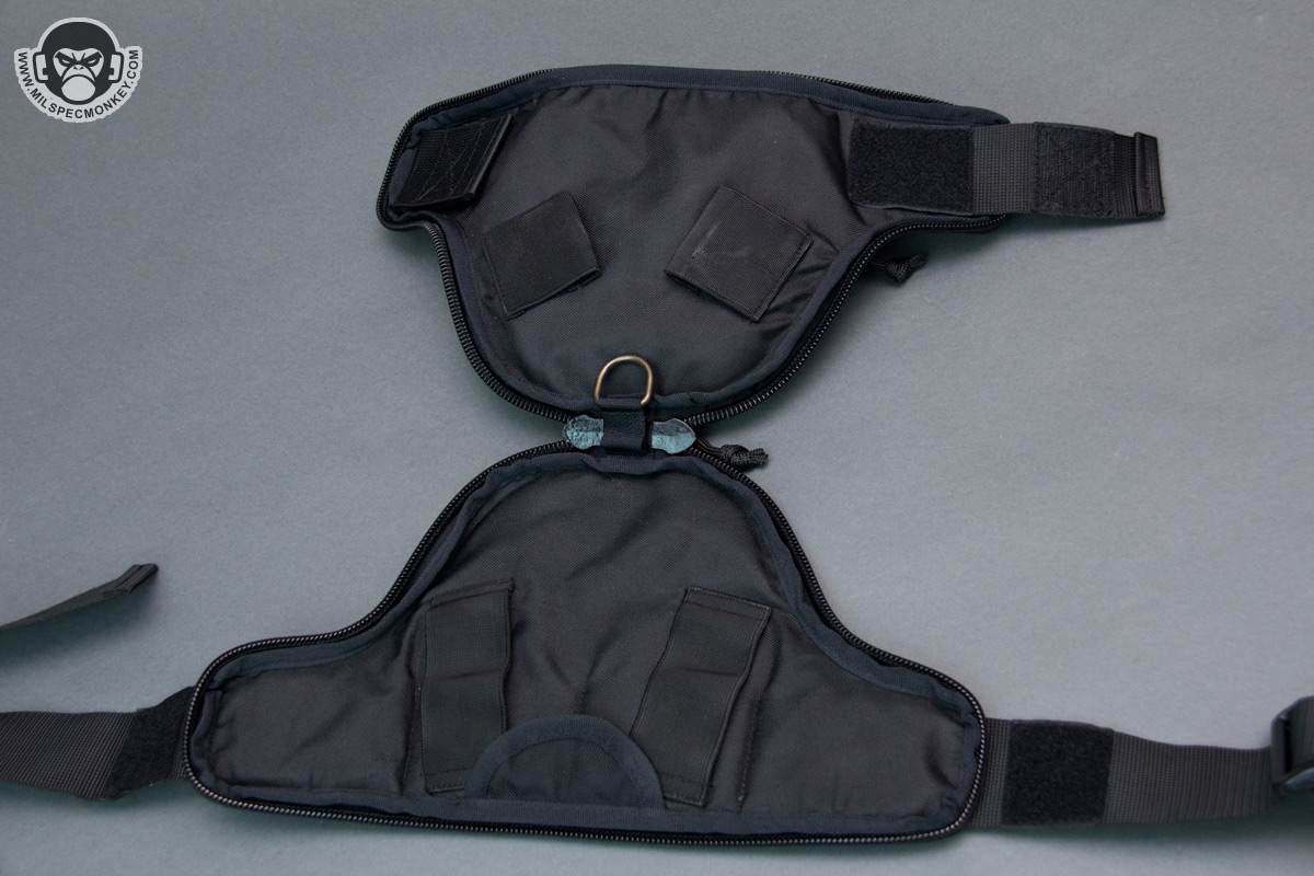 Hasta offers the Flash bag in a standard size for compact pistols and the Flash-L one is intended for full size pistols such as a Glock 17. The big show functionality is definitely the main compartment which is setup with dual zippers and large webbing pull tabs. To setup one chooses an opening side to have the pull tab stick out and then close the zippers into the tab. The webbing tab then uses hook and loop to secure to the belt strap. As an end result one has a secure closure during heavy movement, yet can yank on the pull tab to get smooth and quick access to the main compartment. Fortunately the interior features are symmetrical so ready for both left and right side draw layouts. Features include main elastic straps for the pistol, elastic straps for pistol mags or similar sized objects such as flashlights, a D-ring lanyard connection point at the bottom, and a cover flap up top to keep your sights happy.