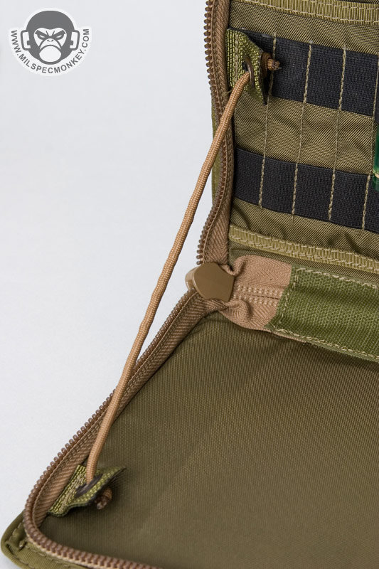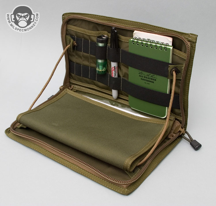 A more unique item, it works great for having quick access to documents and other admin goods. The intention is to mount it on the chest area of you kit, however it can also work well attached to a tactical bag. When mounted to the chest, the panel opens to about 100 degrees thus making a great hands-free admin platform.