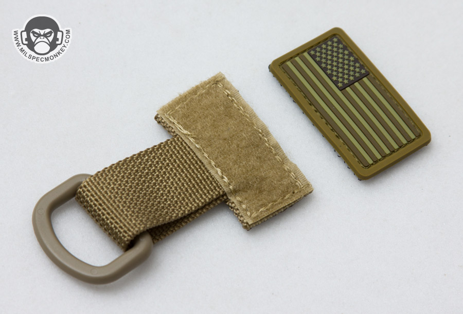 As a tag along I wanted to show the T-ring as well; A simple way to add a D-ring to anything with PALS webbing. For installation I found one can rotate the D-ring sideways or fold the webbing tab, which should be noted has loop velcro for some bonus morale size patch options. As a small down side I wish the D-ring slack was sewn down since as is it can get rotated away from its desired proper position. Luckily this issue will not affect holding capability, but the unit can be pulled up-out with a side rotated D-ring.