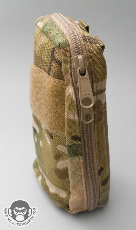 An example loadout could include: chem lights in the loops, signal mirrors, map in the clear window, Blood Chit, radio frequencies, or rifle dope. Civie wise this pouch can be horizontally belt mounted and make a pretty good organizer. One could keep all their wallet type items, pens, notes, and more. The back has larger than usual PALS columns to allow placement fudging between 2 or 3 columns wide using 2 long Malice Clips. Up top are 2 webbing loops for further mounting options. No cons offhand, everything is functional and the size / layout bring something new to the pouch market. This particular one is vertical mount, but a horizontal version is also available. Word on the street is the horizontal version can make a pretty nice admin pouch as well. Currently available in OD, Tan, ACU, and Multicam.
