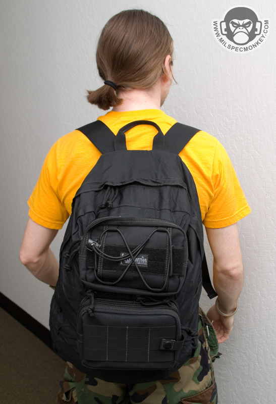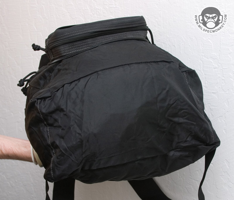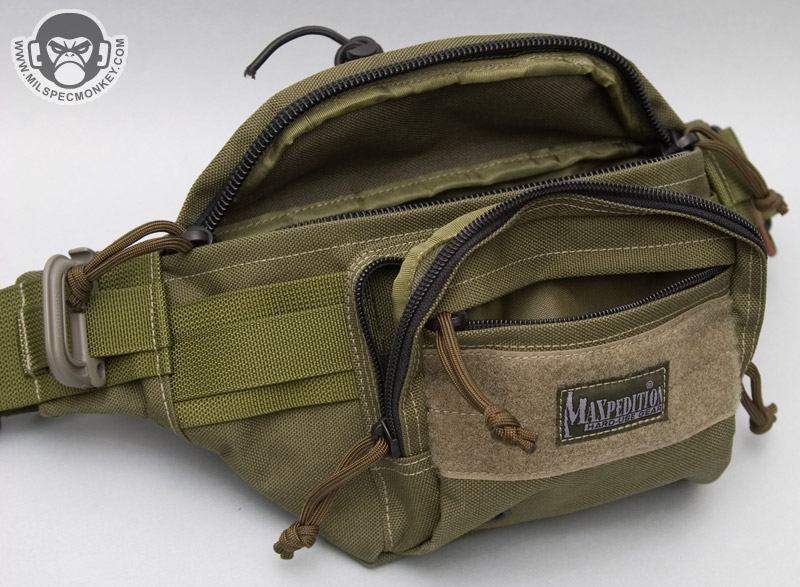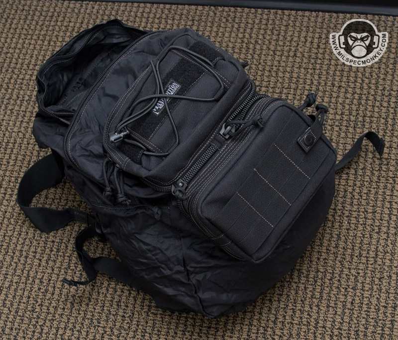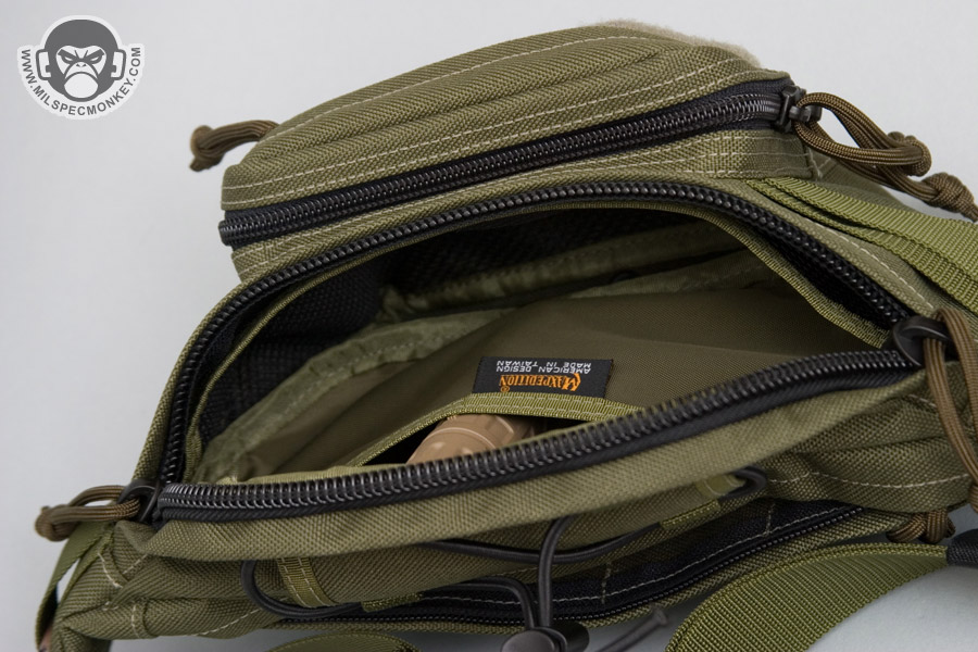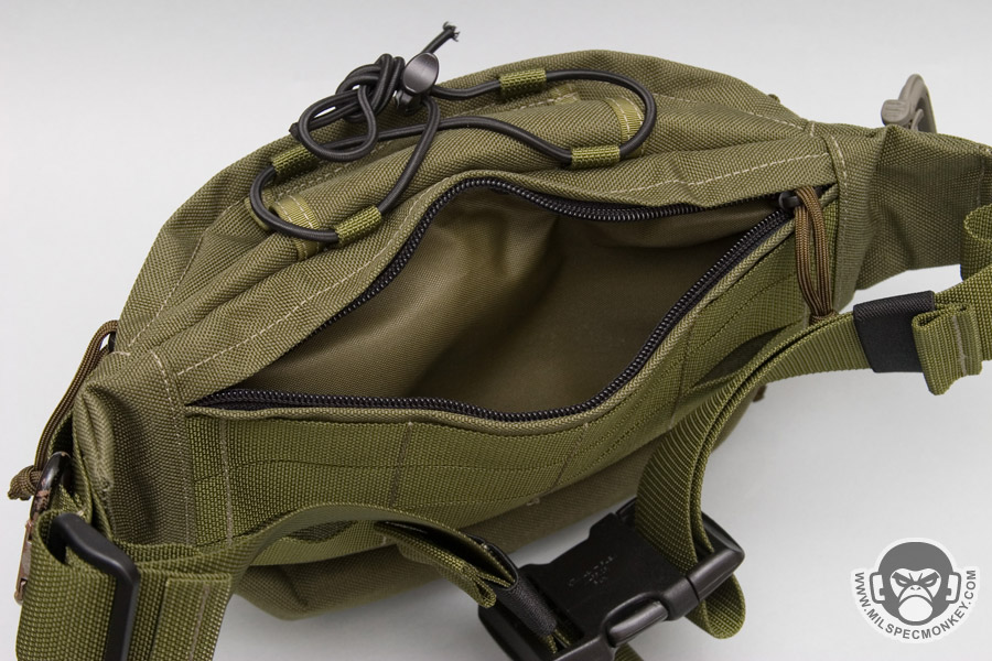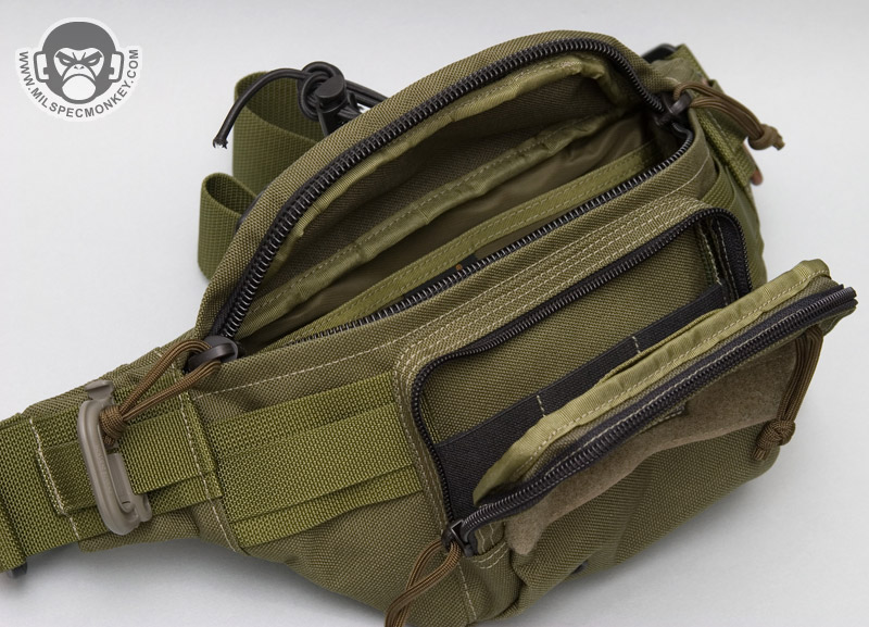 The Packrat makes for a nice take on an admin pouch sized multipurpose pouch. Elastic on the inner front is good for pens and tools, while the back inner elastic is setup more for small notebooks. In the back is a sleeve pocket for extra documents or thin division. Personally I'd like to see another elastic strip on the inner back for more holding options. Since this pouch opens up clamshell style, it makes the pouch much more versatile than most admin pouches out there. Although PALS webbing on the front is good for quick places to put things, I'd drop the top strip and add loop velcro.
